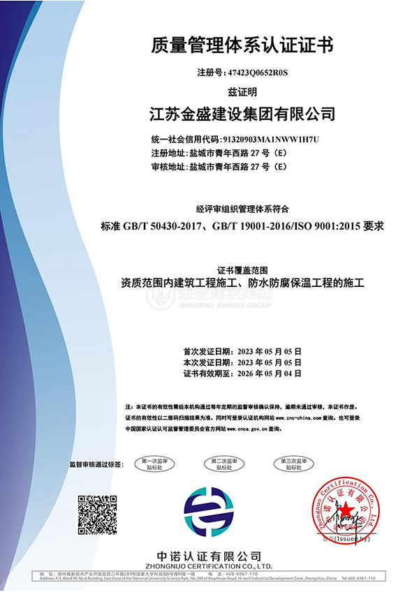 • 施工總承包貳級(jí)新防水防腐保溫工程專業(yè)承包一級(jí)